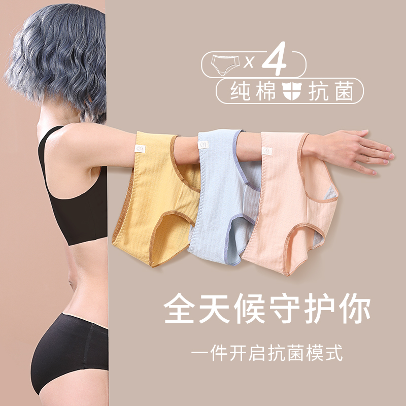 【产品名称:女士内裤女纯棉抗菌夏季薄款全棉中腰少女生胖mm大码三角短裤衩女】