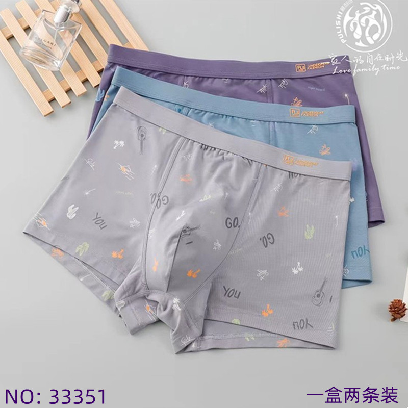 【产品名称:普利诗内裤男士再生纤维抗菌裆青年中腰透气平角裤头两条装33351】