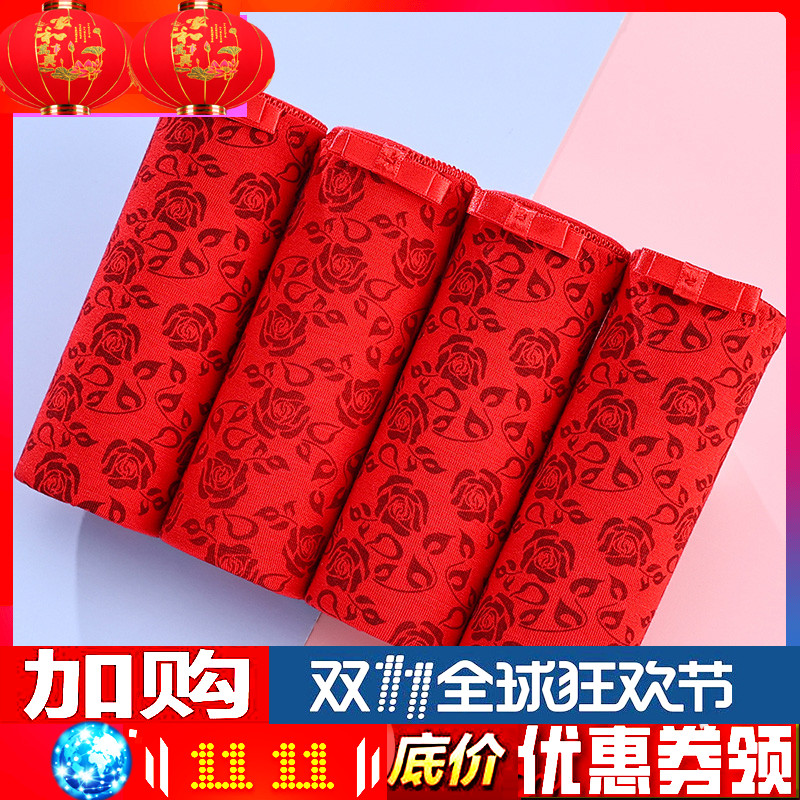 【产品名称:蝶安芬大红色女士内裤莫代尔竹纤维高腰平角本命年结婚喜庆红短裤】