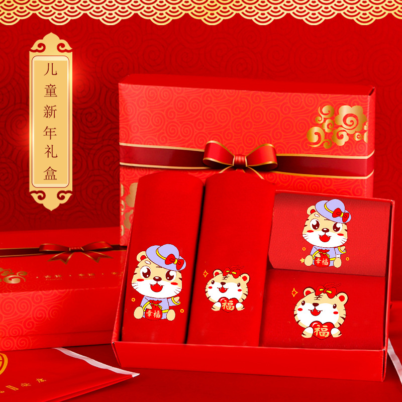 【产品名称:2022虎年儿童本命年内裤女男童大童红色内衣套装袜子礼盒礼物12岁】