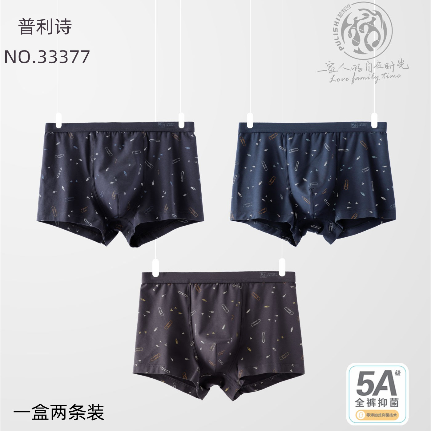 【产品名称:普利诗内裤男长绒纯棉抑菌印花青年中腰透气平角短裤两条装33377】