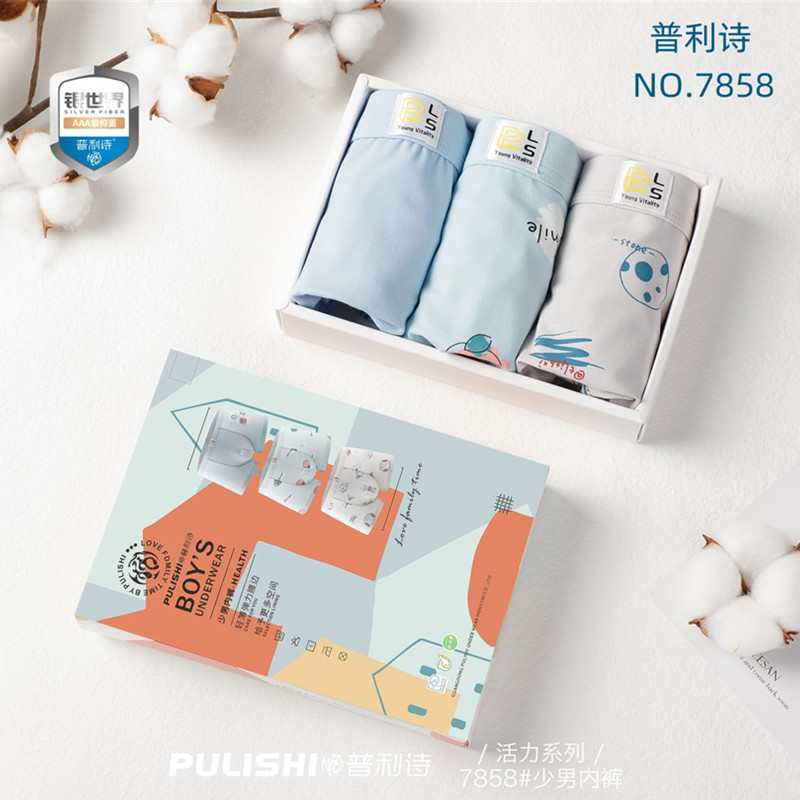 【产品名称:普利诗少男内裤柔纱纯棉抑菌裆卡通简约中腰大童平角裤三条装7858】