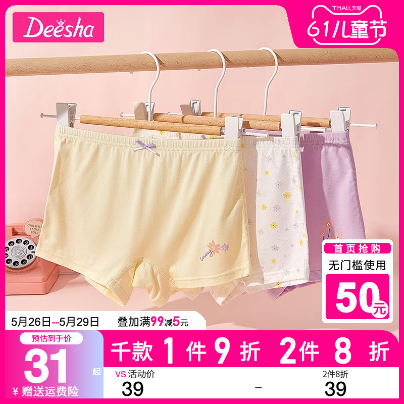 【产品名称:笛莎童装女童抗菌小内裤2023春秋新款可爱印花平角内裤3条组合装】