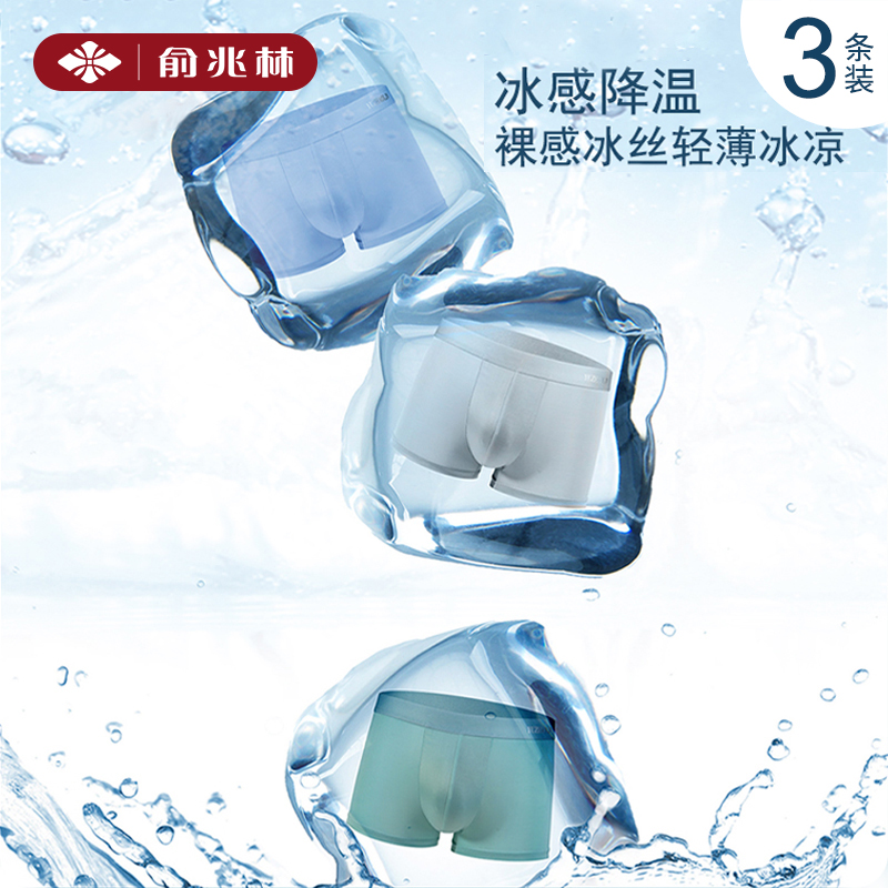 【产品名称:俞兆林男士冰丝凉感轻薄透气四角裤抗菌青少年大码平角内裤3条装】