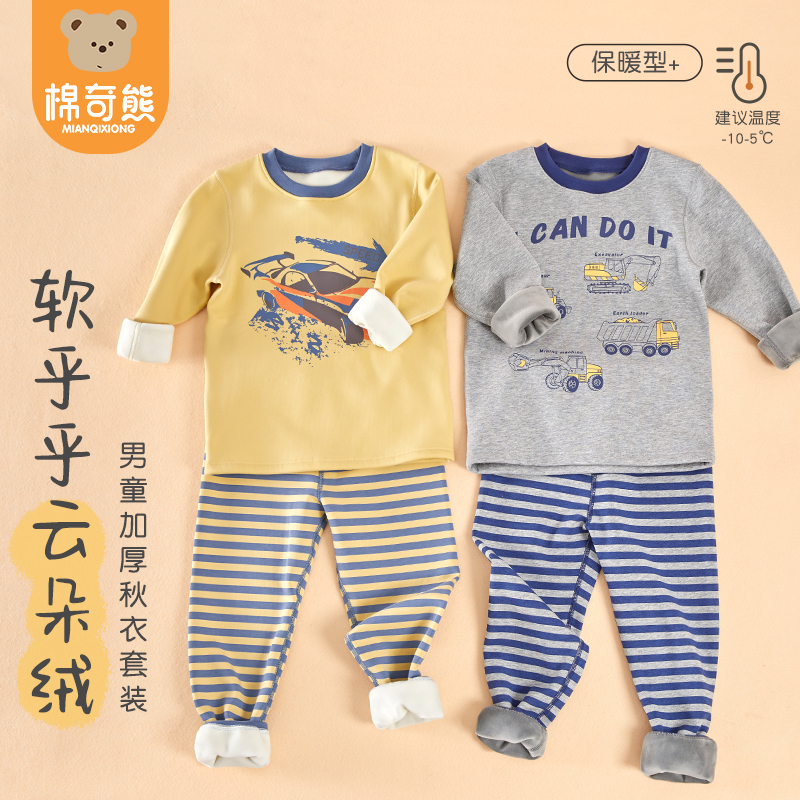 【产品名称:男童秋衣秋裤纯棉新款棉睡衣加绒加厚打底棉毛衫儿童保暖内衣套装】