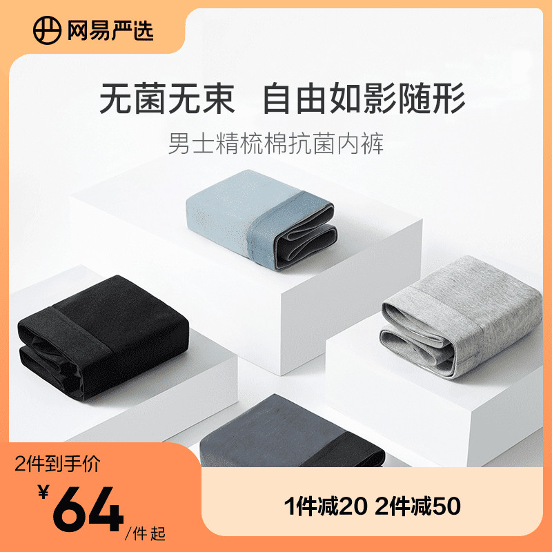 【产品名称:网易严选男士内裤里裆纯棉四角裤透气莫代尔男生短裤头平角裤衩】