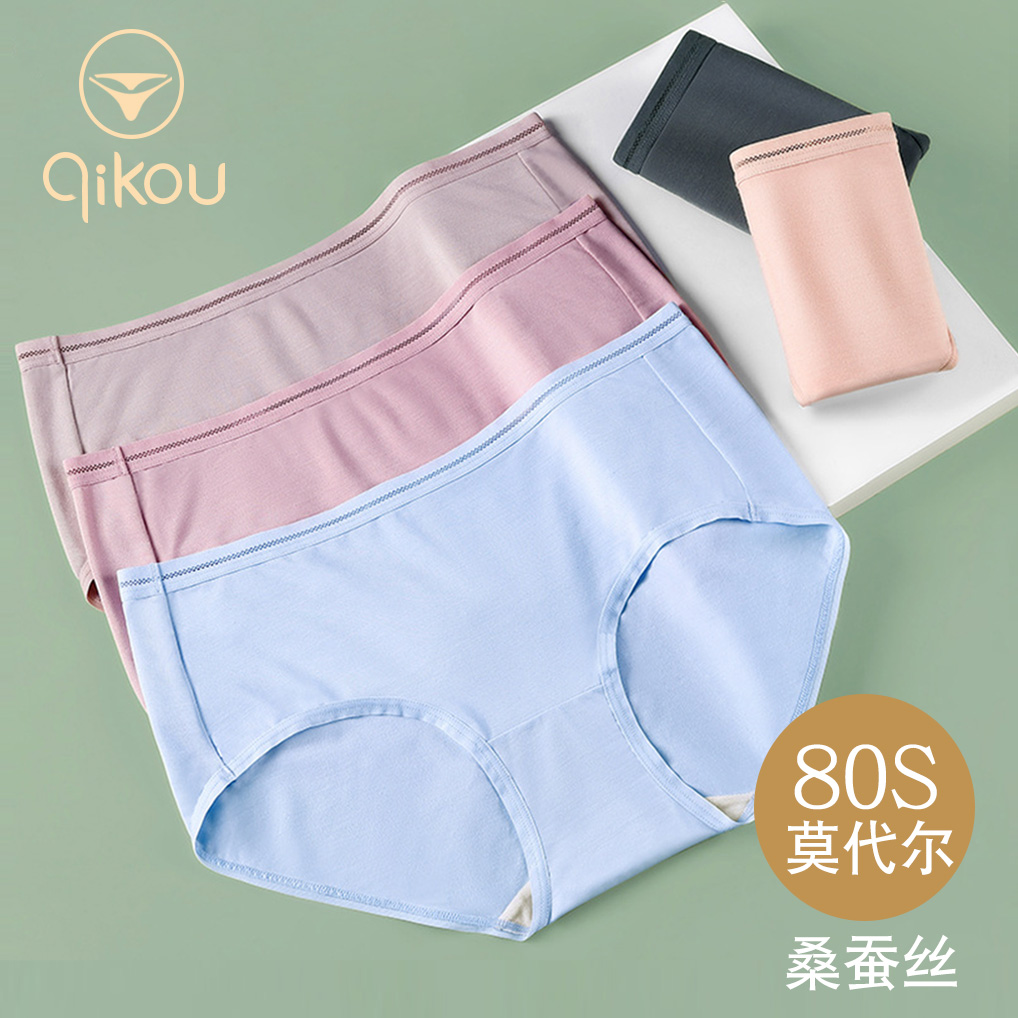 【产品名称:内裤女80S莫代尔女士无痕透气蚕丝抑菌中高腰大码裸感三角短裤头】