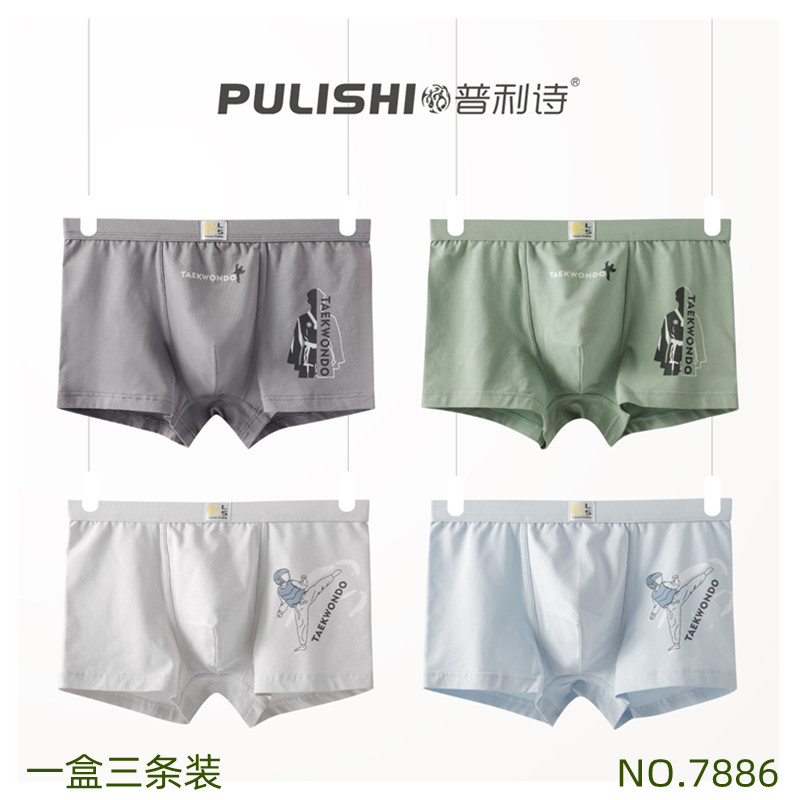【产品名称:普利诗少男内裤柔纱纯棉抑菌大童初中卡通中腰平角短裤三条装7886】