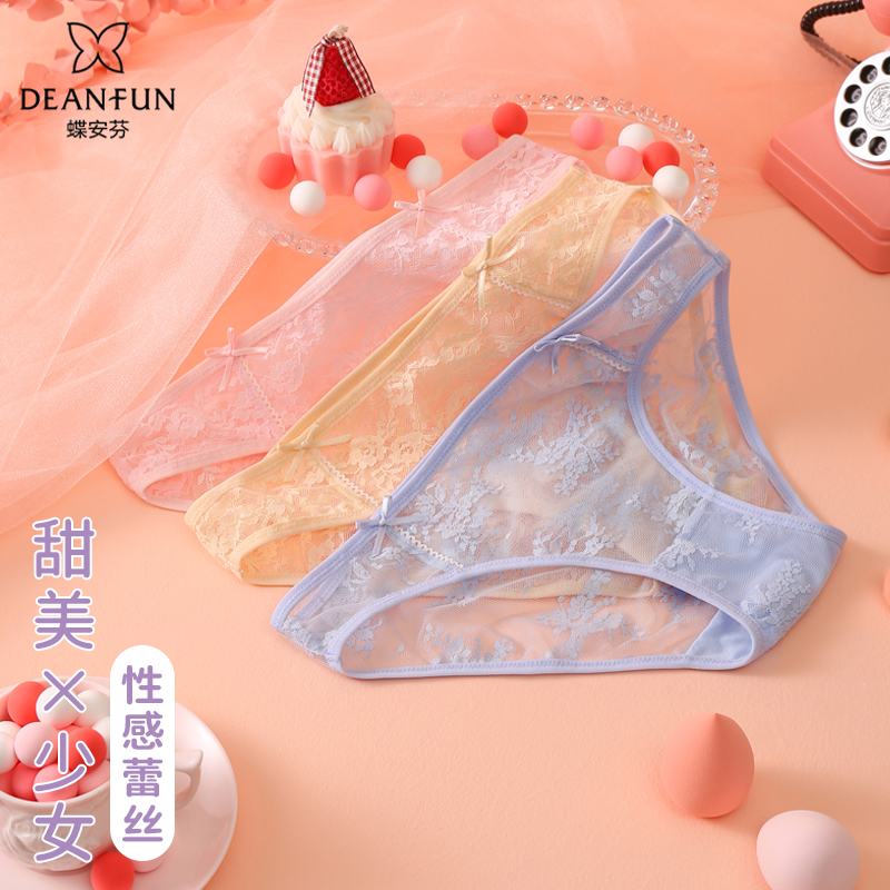 【产品名称:蝶安芬性感中腰蕾丝女士内裤春夏少女风情调纯欲三角裤头时尚薄款】