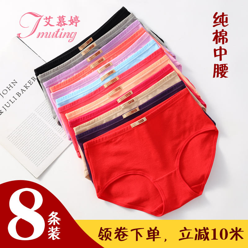 【产品名称:内裤纯棉女士中腰收腹底裤舒适分享全棉三角裤提臀抗菌本命年红色】