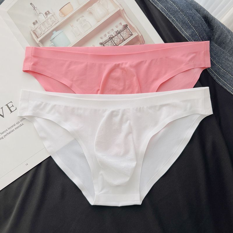 【产品名称:2条装男士三角内裤夏季薄款低腰纯色冰丝一片式无痕透气底裤包邮】