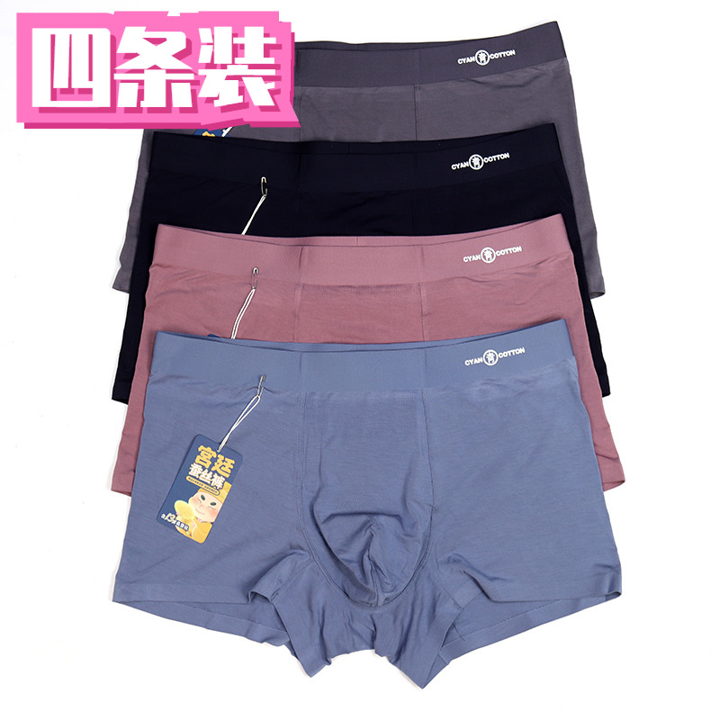 【产品名称:宫廷蚕丝裤 青系男士内裤中腰无痕平角裤超软莫代尔面料 抗菌内裆】