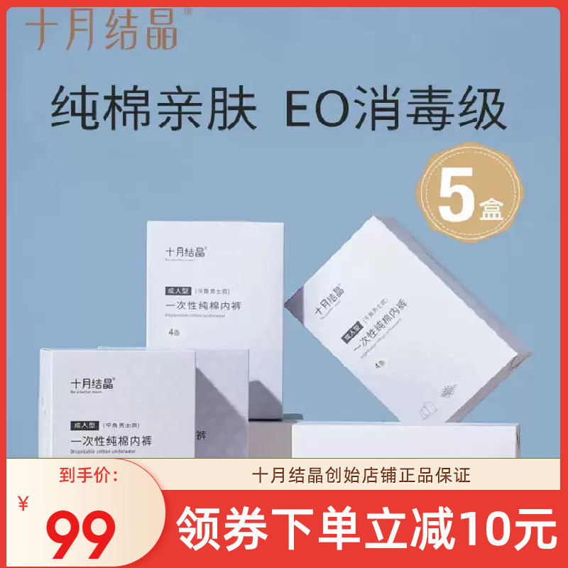 【产品名称:十月结晶一次性内裤男简约平角纯棉陪产旅行出差免洗男短裤五盒装】