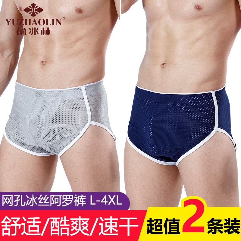 【产品名称:男士冰丝内裤男 冰丝网孔阿罗裤青年性感透气阴囊托囊袋平角裤头】