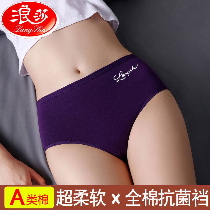 浪莎4条中腰内裤女全棉抗菌裆中年女士内裤包臀大码胖MM三角裤