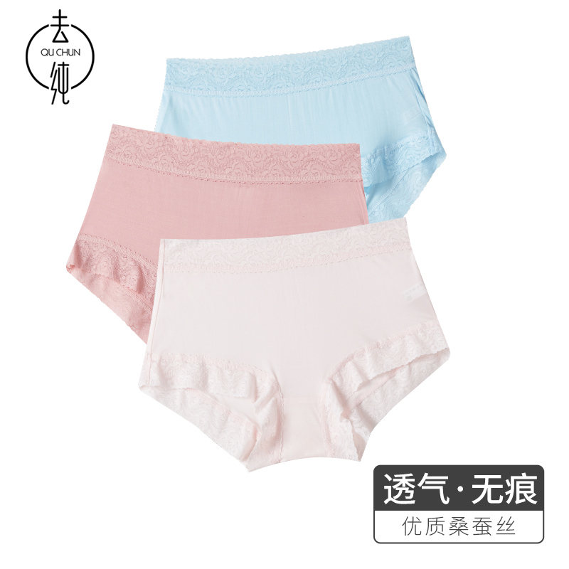 【产品名称:3条女士高腰无痕内裤女桑蚕丝真丝性感透气舒适包臀三角裤纯色女】