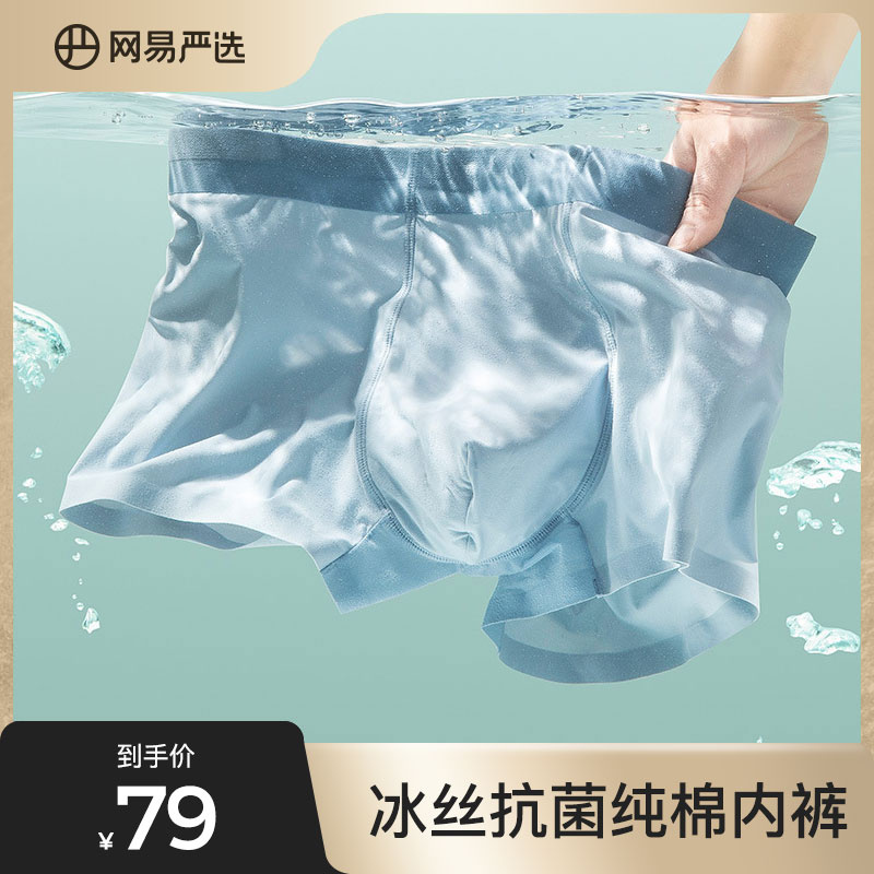【产品名称:网易严选冰丝男士内裤纯棉档抗菌夏季凉感透气舒适平角内裤男裤头】