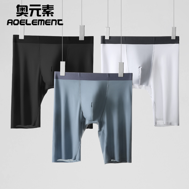 【产品名称:男士加长运动内裤男冰丝夏季宽松四角裤防磨腿大码无痕跑步平角裤】