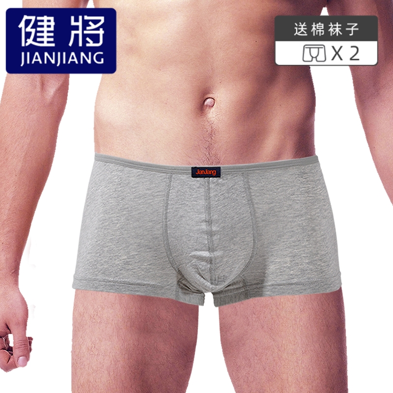 【产品名称:2条装健将男士低腰平角内裤莫代尔透气四角平脚细边弹力运动纯色】