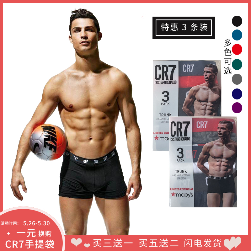 【产品名称:C罗3条装cr7男士内裤平角纯棉裆透气抑菌四季大码中腰四角短裤头】
