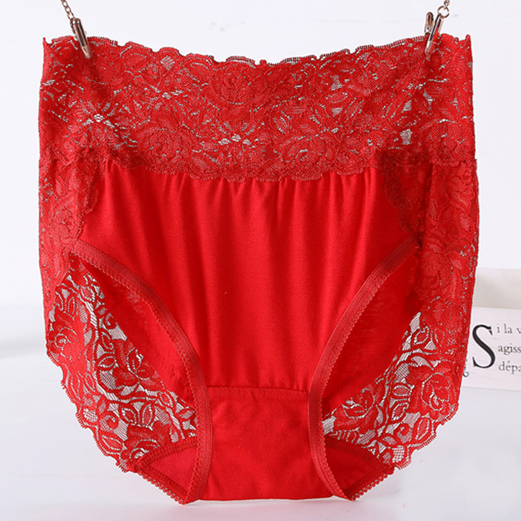 【产品名称:莫代尔蕾丝花边纯全棉性感女士内裤 高腰特大码女三角裤胖mm280斤】