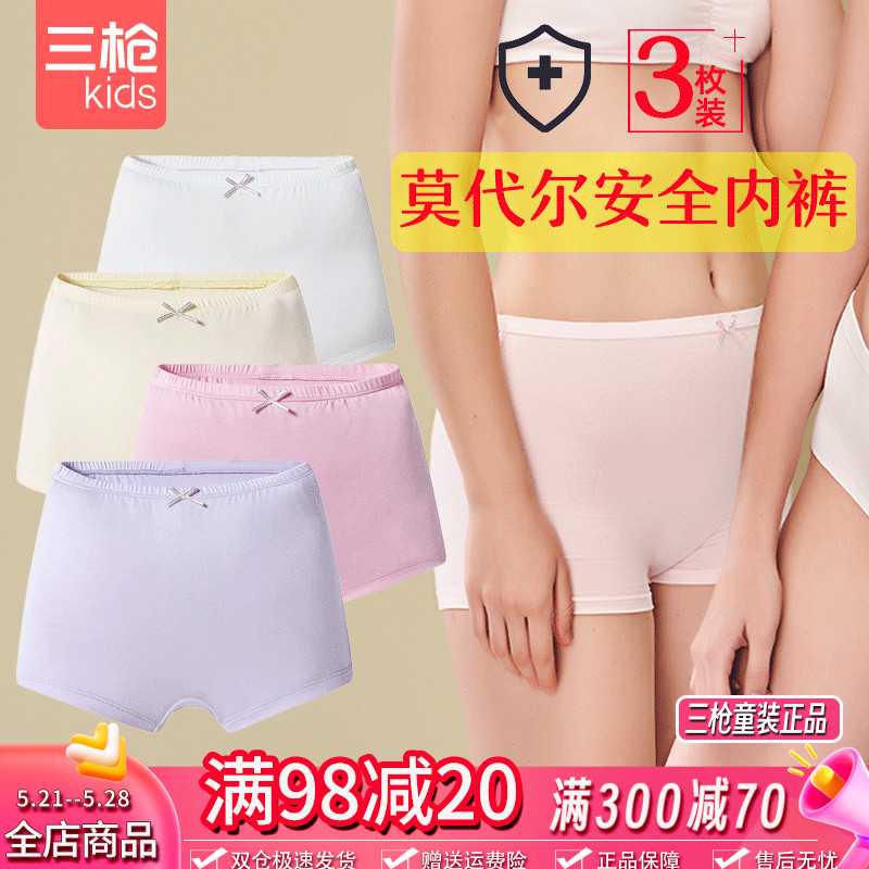 【产品名称:[2/3/4条装]三枪儿童莫代尔女平三角裤中大女孩四角短裤透气内裤】