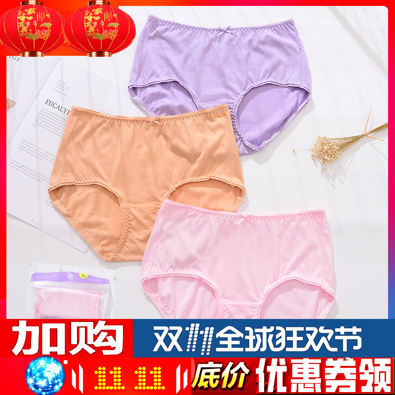 【产品名称:蝶安芬女士内裤女纯棉面料舒适100%全棉透气中高腰妈妈裤头 3条装】