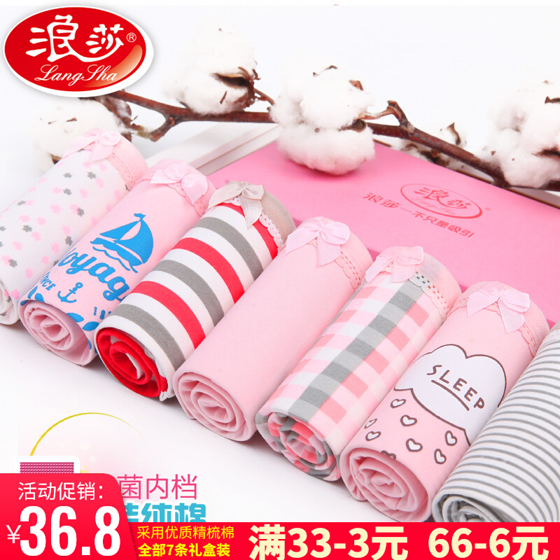 【产品名称:浪莎内裤女7条装纯棉女中腰学生100%全棉档棉质面料大码三角裤头】
