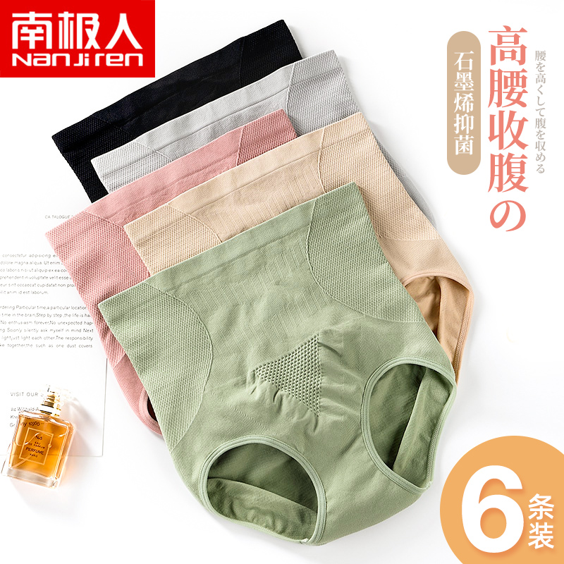 【产品名称:南极人高腰内裤女石墨烯纯棉抗菌裆大码薄款透气无痕收腹提臀三角】
