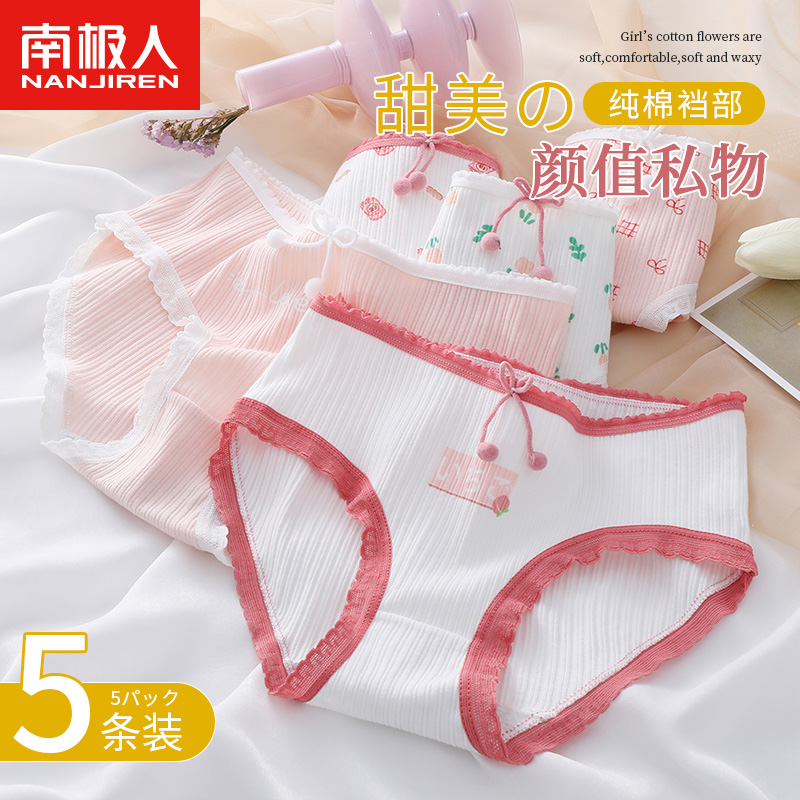 【产品名称:南极人女士内裤纯棉抗菌裆中腰夏季透气甜美可爱新款少女三角短裤】