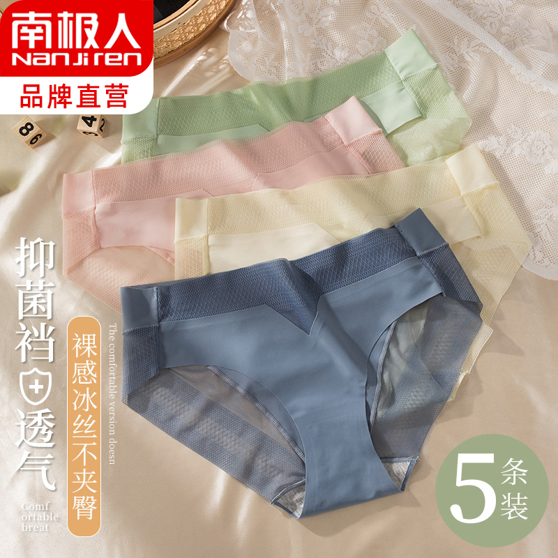 【产品名称:南极人冰丝无痕女士内裤蕾丝半透明性感情调大码三角短裤薄款春夏】