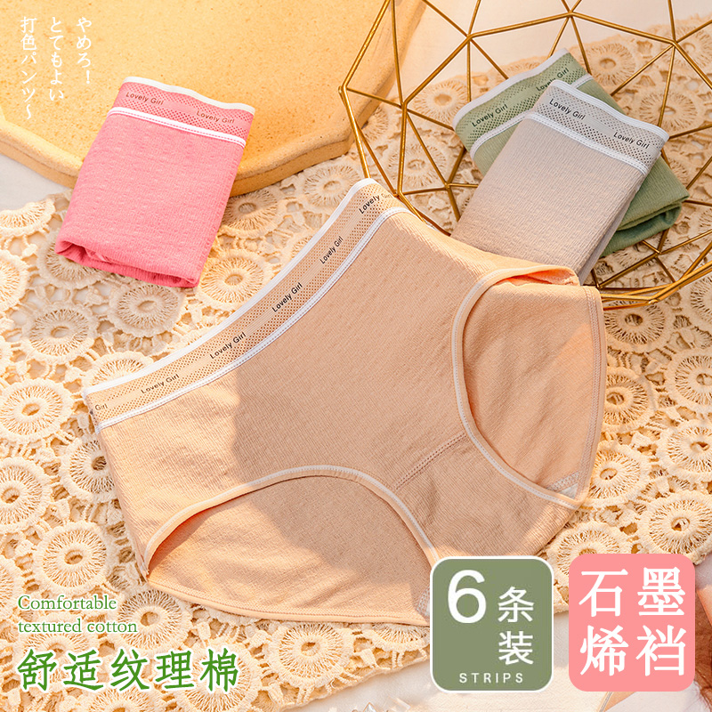 【产品名称:日系女士内裤石墨烯抗菌纯棉裆夏季薄款可爱少女生中腰三角短裤】