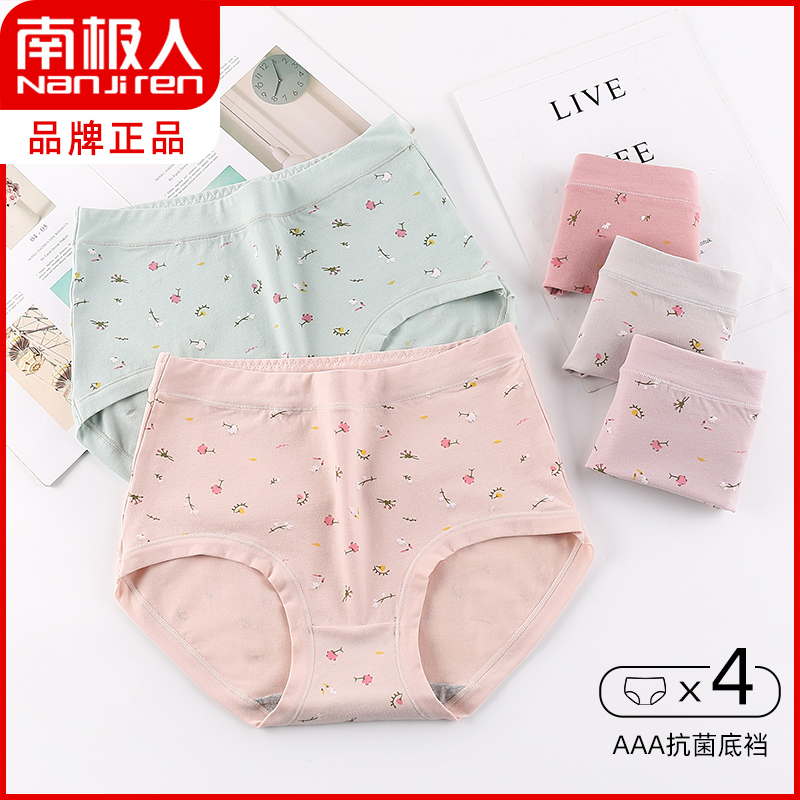 【产品名称:南极人纯棉抗菌印花内裤女士收腹提臀胖mm大码高腰妈妈裤三角裤头】