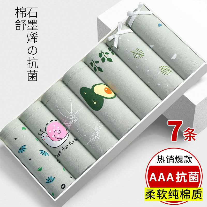 【产品名称:女士内裤95%纯棉中腰大码简约少女可爱学生三角裤石墨烯抗菌收腹】