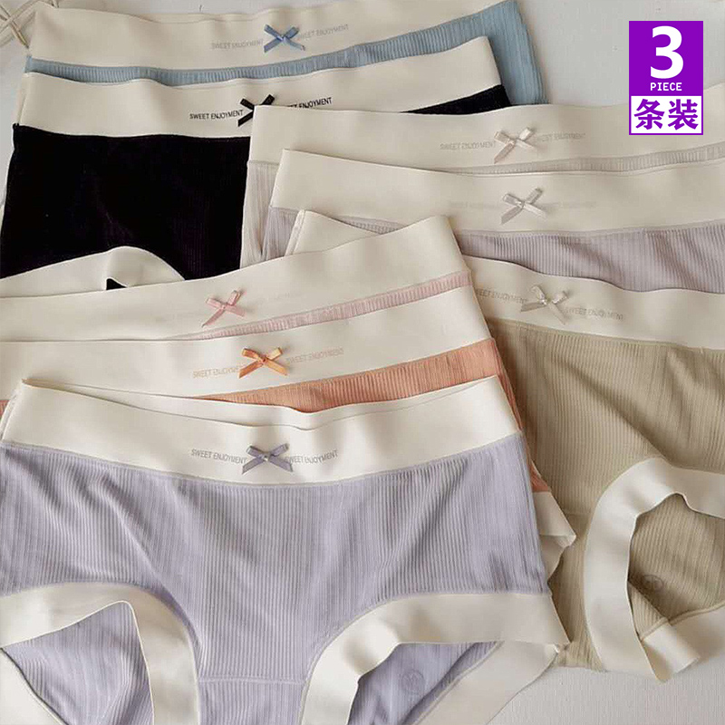 【产品名称:秋季新品软妹裸感螺纹棉女士内裤中腰三角裤无感艾草抗菌无痕】
