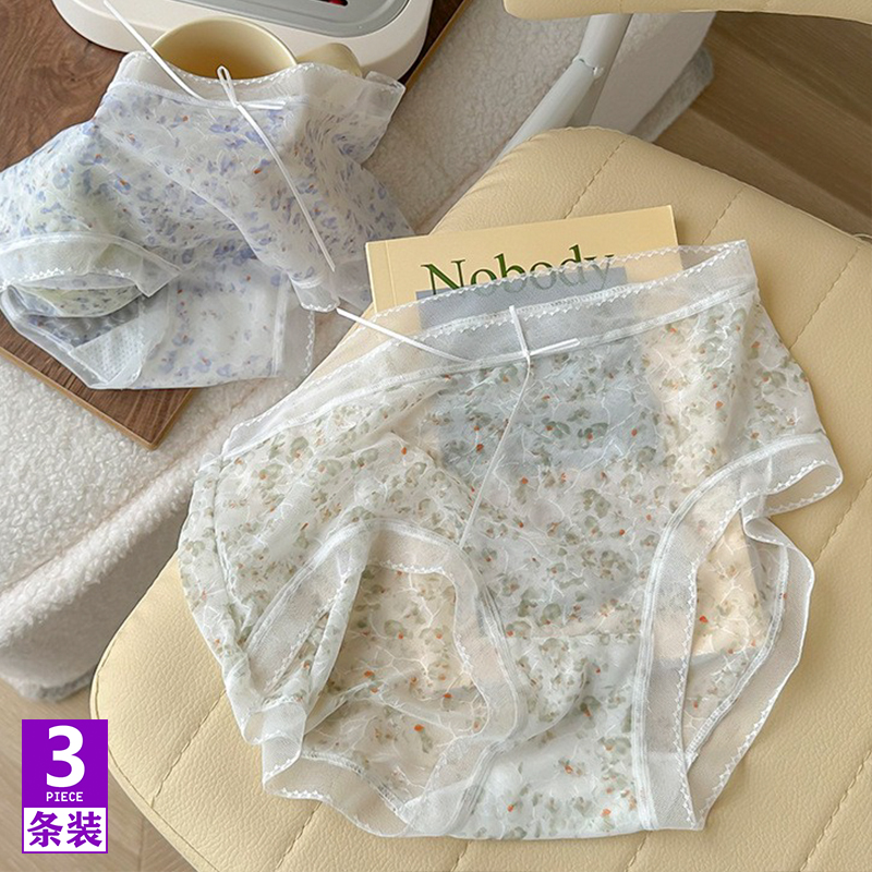 莫奈庄园 冰氧纱夏季薄款碎花少女内裤蝴蝶结亲肤中腰女士三角裤