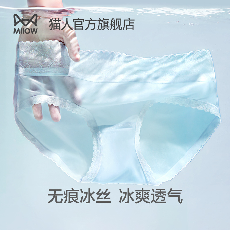 【产品名称:猫人女士内裤冰丝透气无痕女生纯棉抑菌裆夏季凉感薄款三角短裤头】