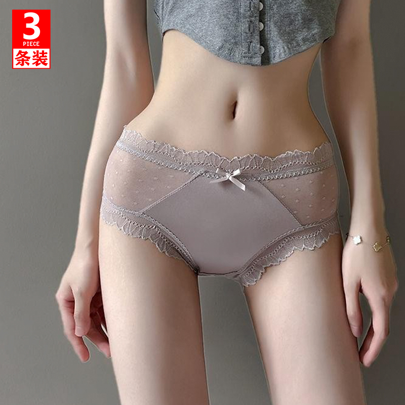 【产品名称:夏季薄款蕾丝冰丝女士纯欲内裤无痕纯棉裆情调性感惑憾提臀三角裤】