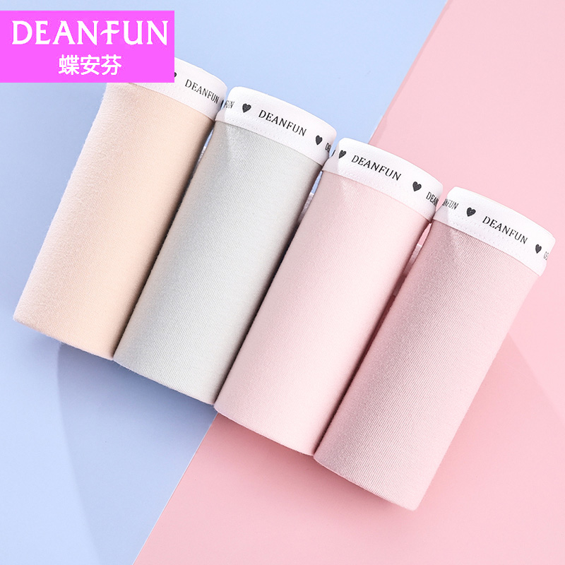 【产品名称:四条装蝶安芬中高腰女士内裤弹力棉字母腰边纯色马卡龙色女三角裤】