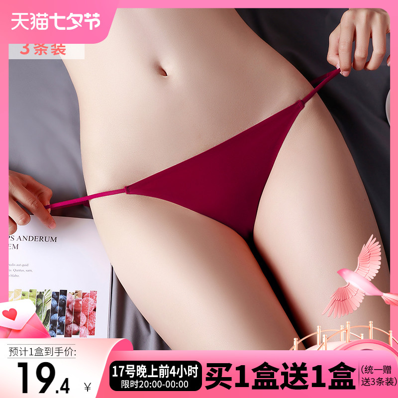 【产品名称:无痕内裤女冰丝夏季薄款性感低腰三角裤薄纯棉档红色女士情调细带】