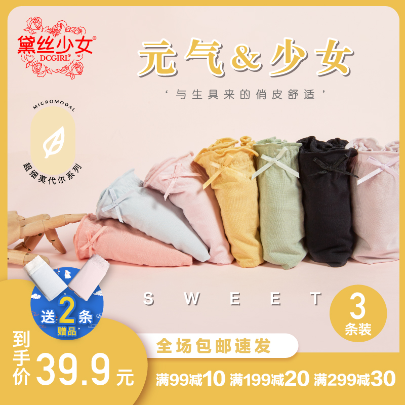 【产品名称:3件黛丝少女内裤女60支莫代尔无痕中腰少女纯棉抗菌裆透气三角裤】