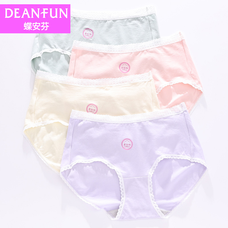 【产品名称:四条装蝶安芬女士内裤柔肤棉纯棉透气底裆女蕾丝性感无痕三角短裤】