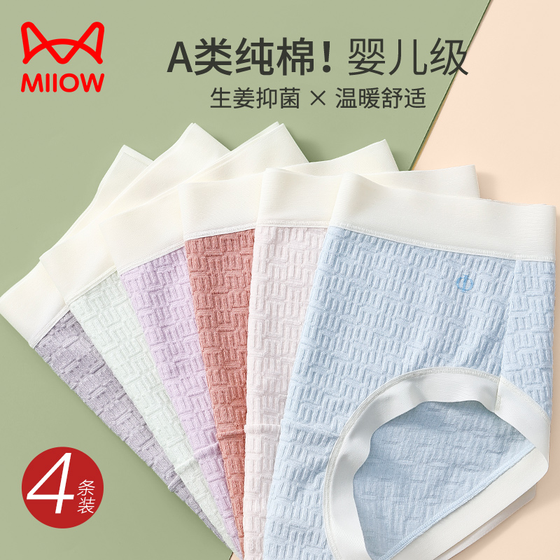 【产品名称:猫人女士内裤女生纯棉抑菌裆全棉中腰无痕透气大码少女短裤头新款】