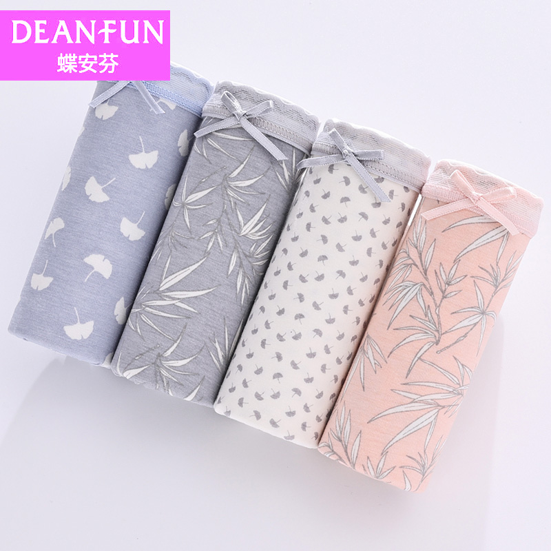 【产品名称:四条蝶安芬柔肤棉女士内裤礼盒装百分百纯棉裆蕾丝性感印花三角裤】