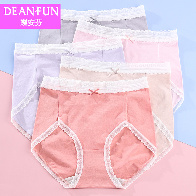 【产品名称:专柜五条装蝶安芬女士内裤清新蕾丝腰边少女生性感纯欲薄款短裤头】