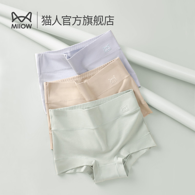 【产品名称:猫人内裤女夏季薄款纯棉抑菌里裆无痕高腰收腹女士内裤打底裤全棉】