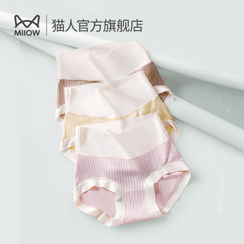 【产品名称:猫人莫代尔内裤女生纯棉抑菌女士无痕短裤高腰收腹大码三角裤新款】