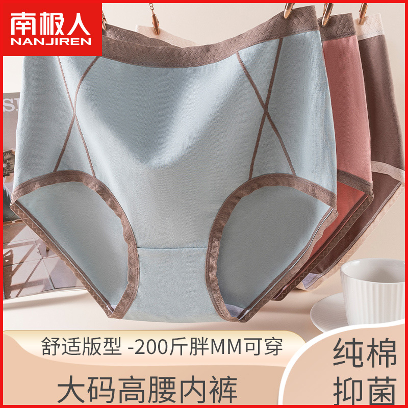 【产品名称:南极人中老年内裤女士纯棉抗菌高腰收腹提臀胖MM大码全棉三角短裤】