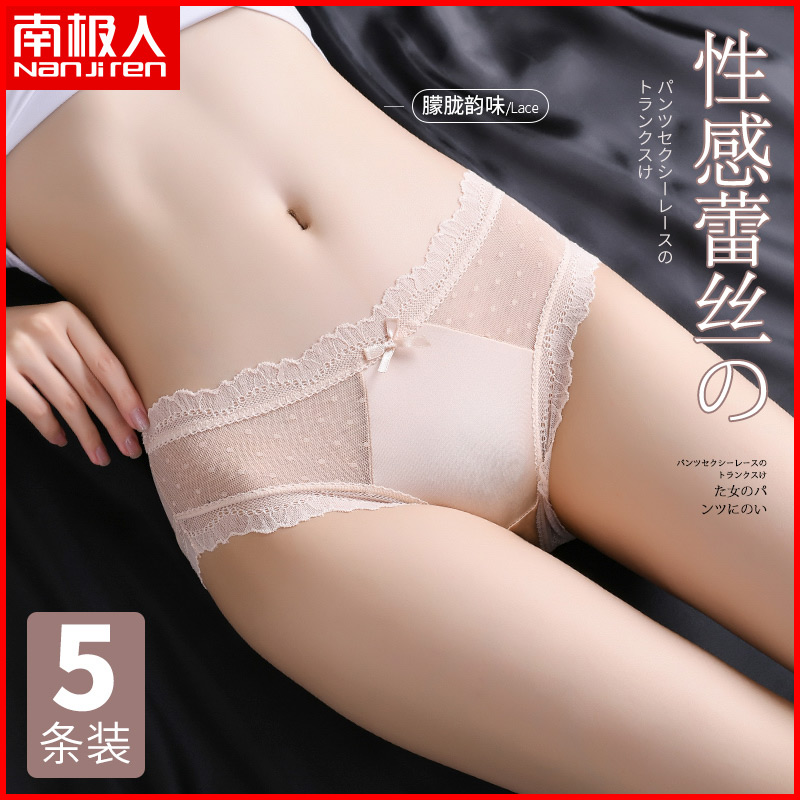【产品名称:南极人内裤女士纯棉裆冰丝透气薄款中腰性感少女蕾丝三角短裤夏季】