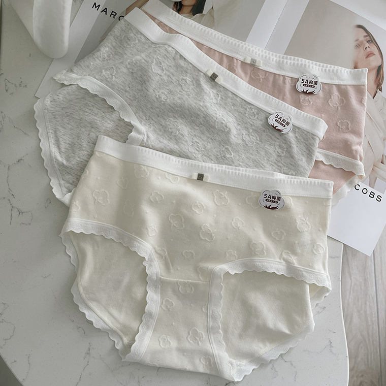 【产品名称:3条装A类婴儿棉内裤女生纯棉云朵中腰包臀甜美花边女士全棉三角裤】